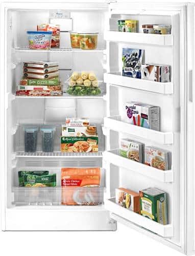 This Amana 16 cu. ft. upright freezer comes with energy-saving insulation, which helps lower the global warming potential of your freezer. You can also chill large amounts of food by using the Fast Freeze option, which can cool down the entire freezer.