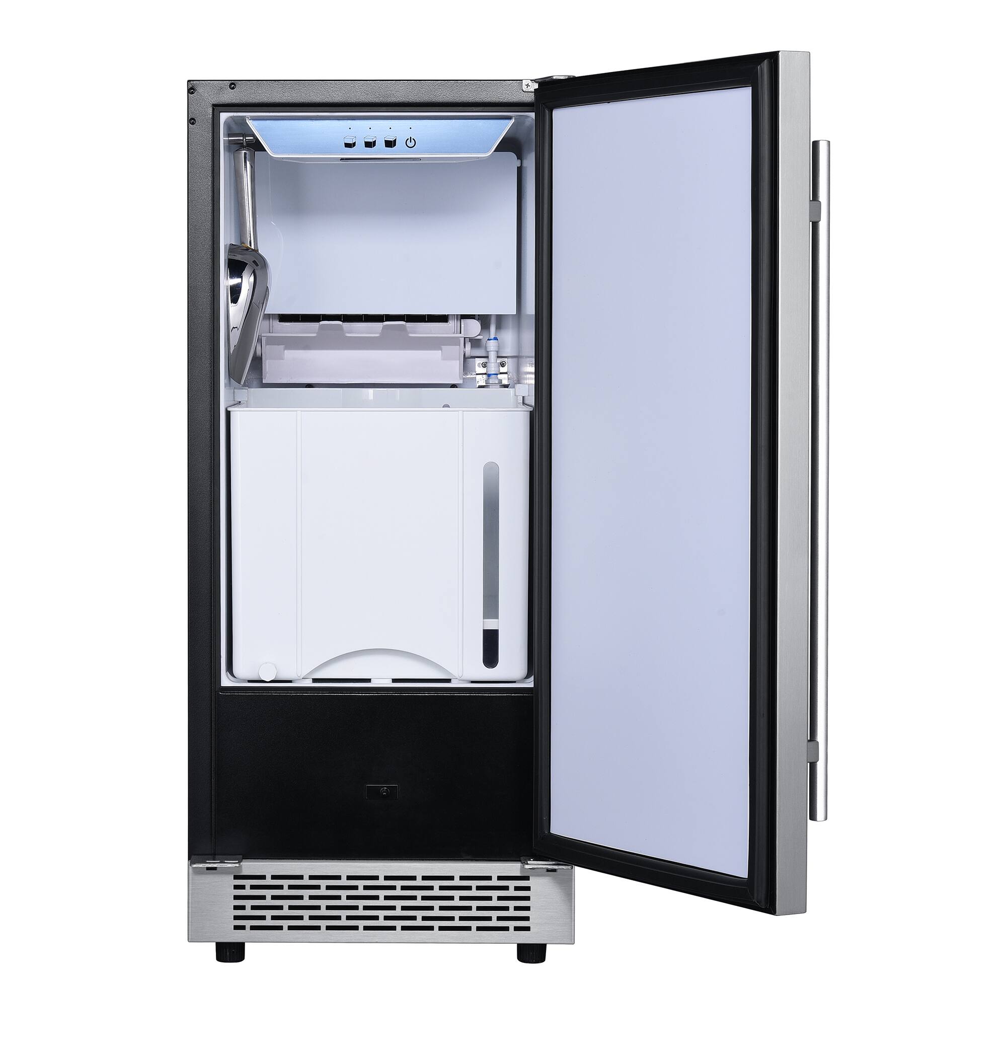 Hanover – Library Series 15″ 32-Lb. Freestanding Icemaker with Reverible Door and Touch Controls – Silver